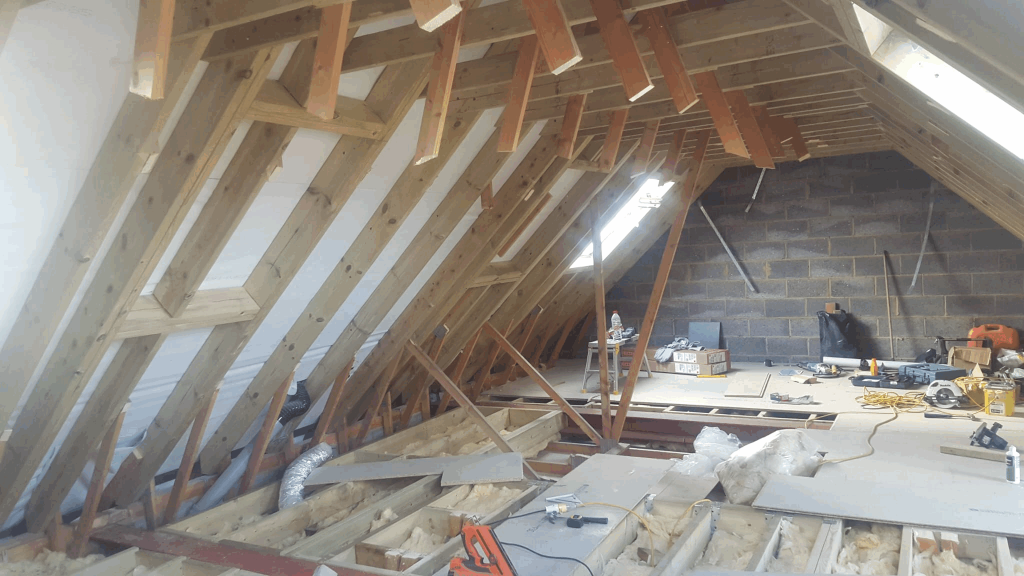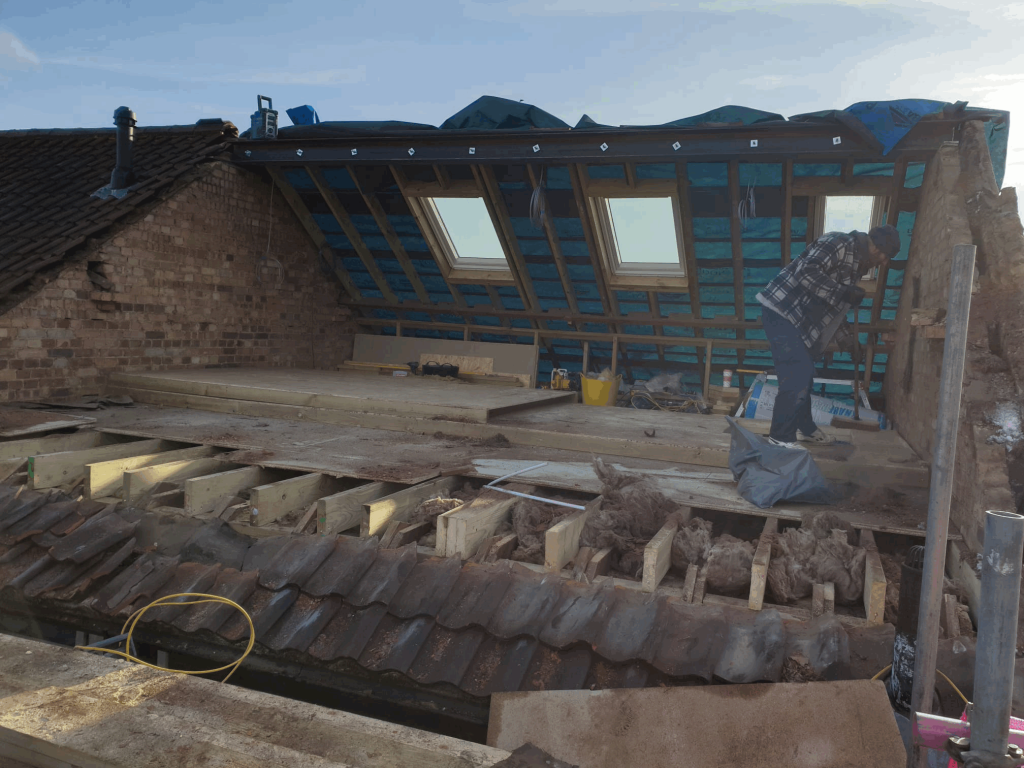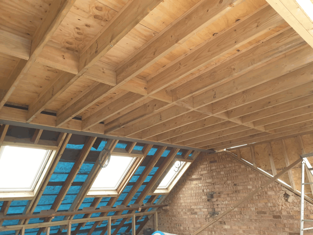- Window Installation: Dormer windows or Velux windows can be added to the new roof structure to flood the space with natural light.